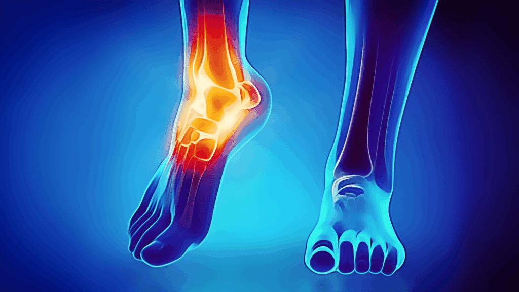 Mas o que exatamente acontece no tornozelo durante uma entorse? A lesão ocorre quando os ligamentos, as fortes faixas de tecido elástico que conectam os ossos e estabilizam a articulação, são esticados ou rompidos. O tipo mais comum é a entorse por inversão, na qual o pé vira para dentro, sobrecarregando e danificando os ligamentos na parte externa do tornozelo. Essa sobrecarga pode variar de um leve estiramento a uma ruptura completa.